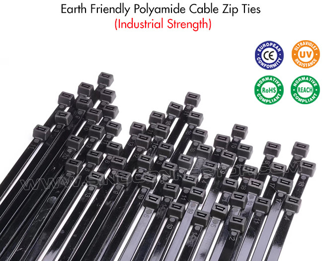 Они предназначены для быстрого закрепления пучков проводов и компонентов жгутов без соскальзывания. Большинство кабельных стяжек, оснащенных самоблокирующейся головкой, рассчитаны на температуру от 40°F (-40°C) до 185°F (85°C). Застежки-молнии доступны различной длины, ширины и прочности. Изготовлен из одобренного UL полиамида 66 (нейлона 66), воспламеняемость 94V-2, он обладает кислотостойкостью, коррозионной стойкостью и хорошей изоляцией, не подвержен старению и обладает высокой несущей способностью.