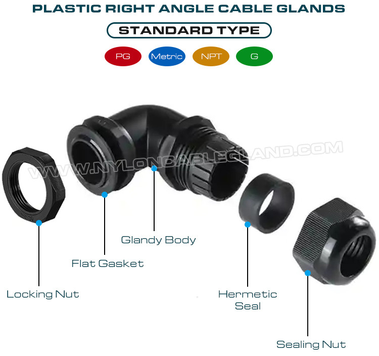 | Наименование продукта: | Угловые пластиковые кабельные вводы IP68 PG9~PG29/M16~M32/NPT3/8"~NPT1" с резьбой PG, метрической и NPT |